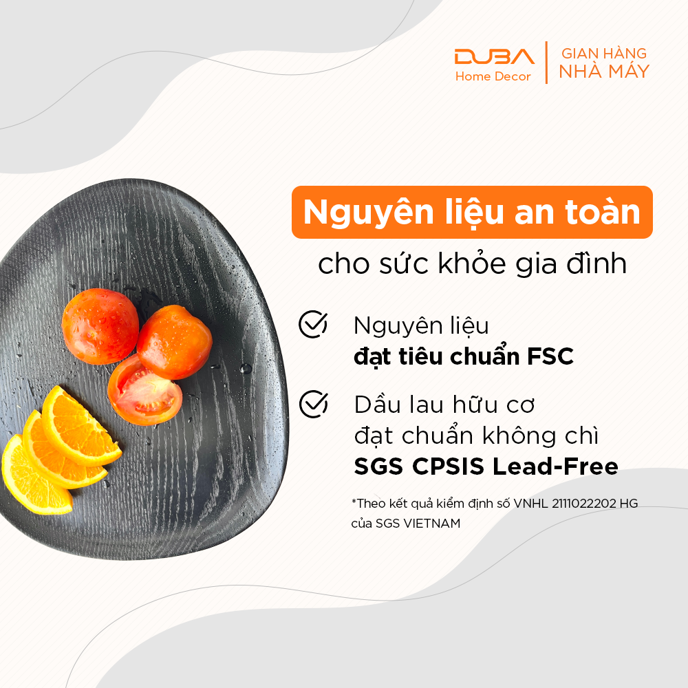 Khay gỗ decor, dĩa gỗ, đĩa gỗ đựng đồ ăn chuẩn an toàn xuất khẩu Mỹ - DUBA (Hàng mẫu xuất Mỹ) - Sản phẩm khay gỗ sồi đạt tiêu chuẩn xuất khẩu, hoàn toàn