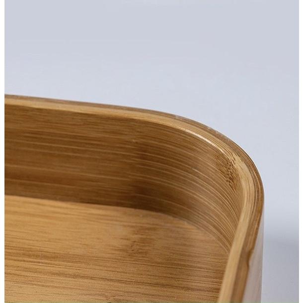 Khay gỗ chữ nhật đựng trà bánh được làm từ chất liệu gỗ tre tự nhiên cao cấp, tinh tế trong từng đường nét, màu sắc ấm dịu và gần gũ Khay gỗ trang trí