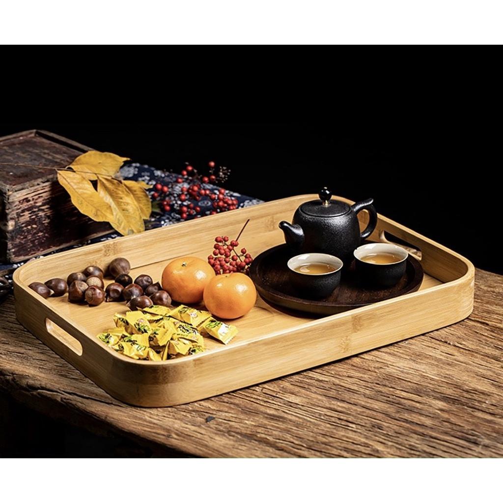 Khay trà gỗ tre tự nhiên cao cấp chữ nhật có tay cầm