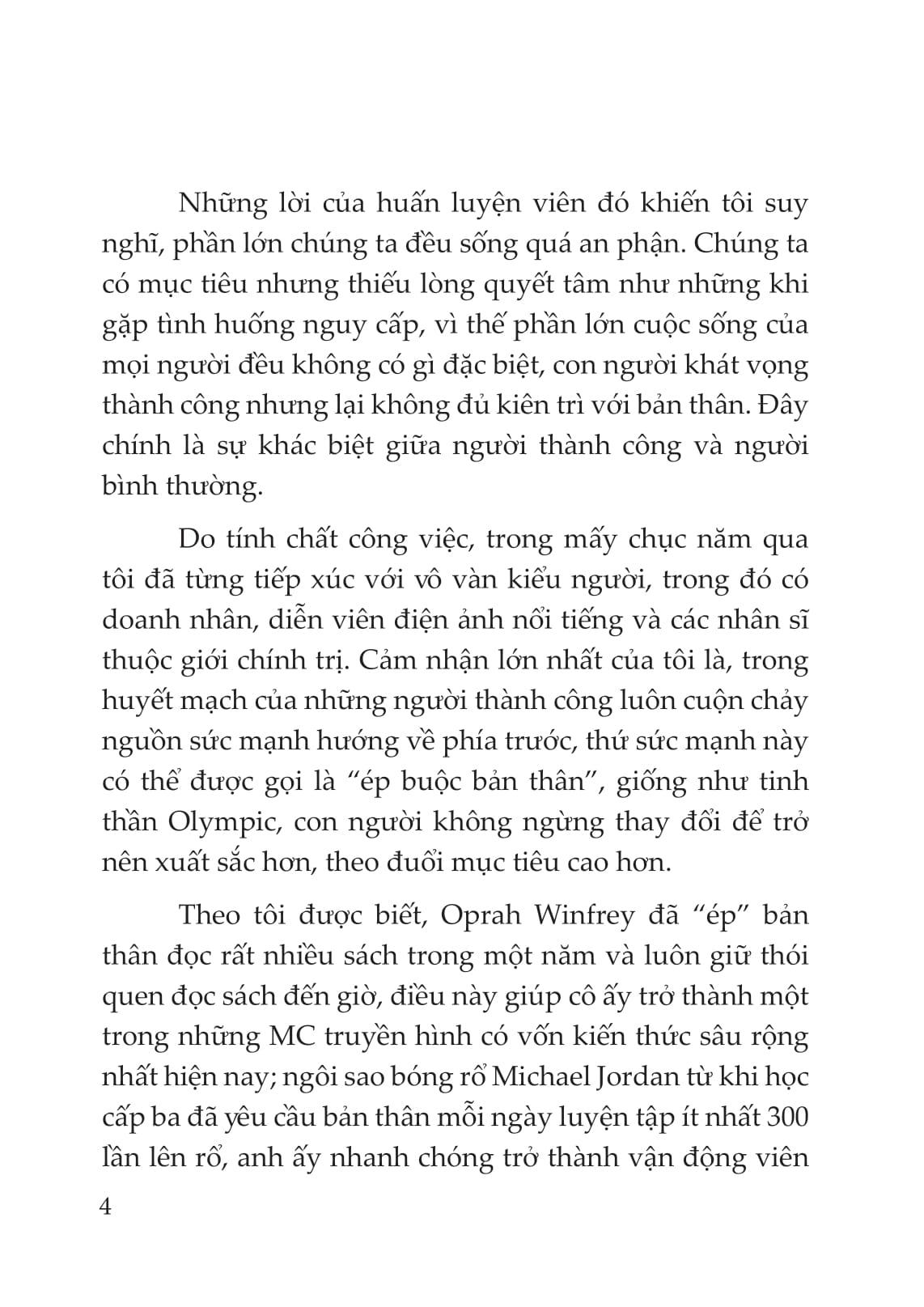 Bạn có biết làm thế nào để một đứa trẻ không biết bơi lại nhanh chóng học bơi được hay không? Rất đơn giản, chỉ cần trả trẻ xuống nước , để trẻ giãy giụa, làm quen với nước, rồi dần sẽ biết bơi”. Con người ta cũng vậy, chỉ bộc lộ rõ tiềm năng của mình khi gặp tình huống nguy hiểm, khi bị “ép” phải tiến lên. Do vậy, phá bỏ giới hạn của bản thân không khó, quan trọng là bạn có đủ bản lĩnh để dấn thân hay không, bạn có đủ quyết liệt để ép bản thân xuất sắc hơn người khác hay không?