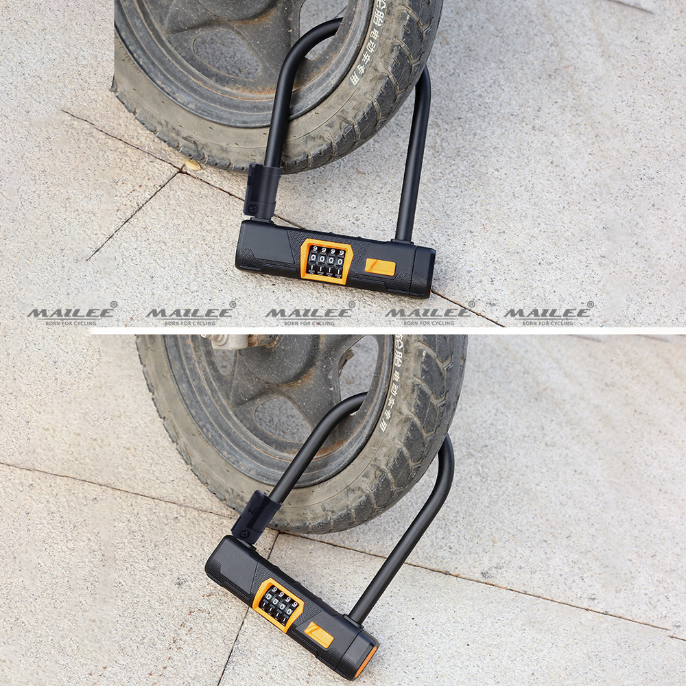 Khóa Chữ U Chống Trộm Cho Xe Máy/ Xe Điện/ Xe Đạp U-0511 Hợp Kim Thép Vỏ PVC - Khóa Mã 4 Số + Cáp Thép 1m2 (tùy chọn) - Mai Lee - Sản phẩm