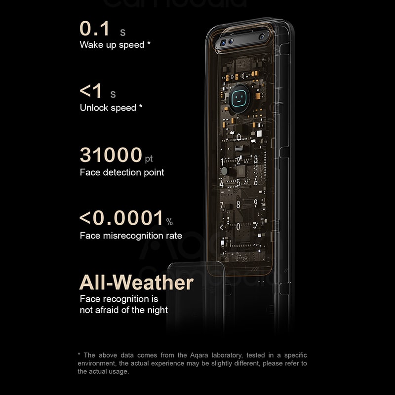 - Giao thức kết nối: Bluetooth và Zigbee 3.0 (Cần có Aqara Hub M1S, Aqara Hub M2, Aqara Hub E1, Camera Hub Aqara G3…) Khóa thông minh nhận diện khuôn mặt với công nghệ AI Aqara Smart Door Lock D200i là phiên bản khóa thông minh nhận diện khuôn mặt tiên tiến nhất từ Aqara. Với công nghệ AI tích hợp bán dẫn 3D, khóa Aqara sẽ nhanh chóng nhận diện ra các thành viên trong gia đình và bạn có thể vào nhà mà không cần bất kì một thao tác nào. Vùng nhận diện rộng, đảm bảo thấy được cả trẻ em và người lớn với chiều cao từ 1.3m – 2.0m. Bên cạnh đó, bạn có thể sử dụng các tính năng mở khóa khác tương tự các dòng Aqara Smart Lock như: