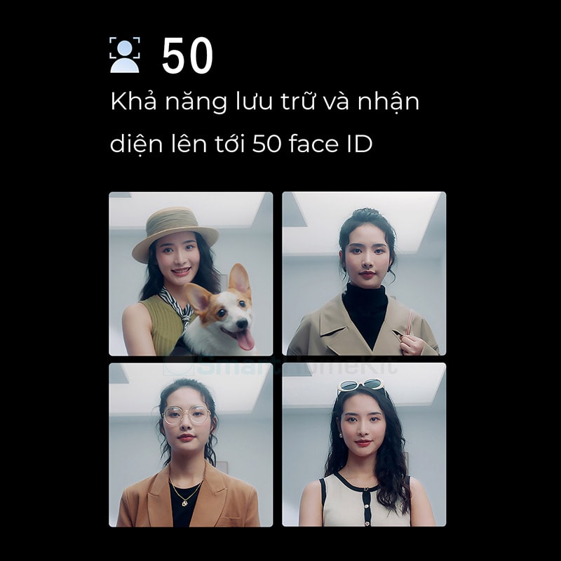 - Hỗ trợ 50 khuôn mặt, 50 mật khẩu, 25 mật khẩu tạm thời, 8 mật khẩu dùng 1 lần, 25 NFC