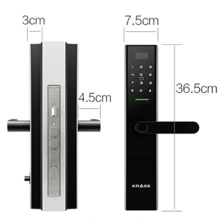 Thông số kỹ thuật: Kích thước khóa: 77x425mm Nguồn cung cấp 7,4V (Pin lithium kép) Dòng điện hoạt động: <300 mA Tuổi thọ pin: Mở cửa 30.000 lần Nguồn điện khẩn cấp: 5V-2A, Micro USB