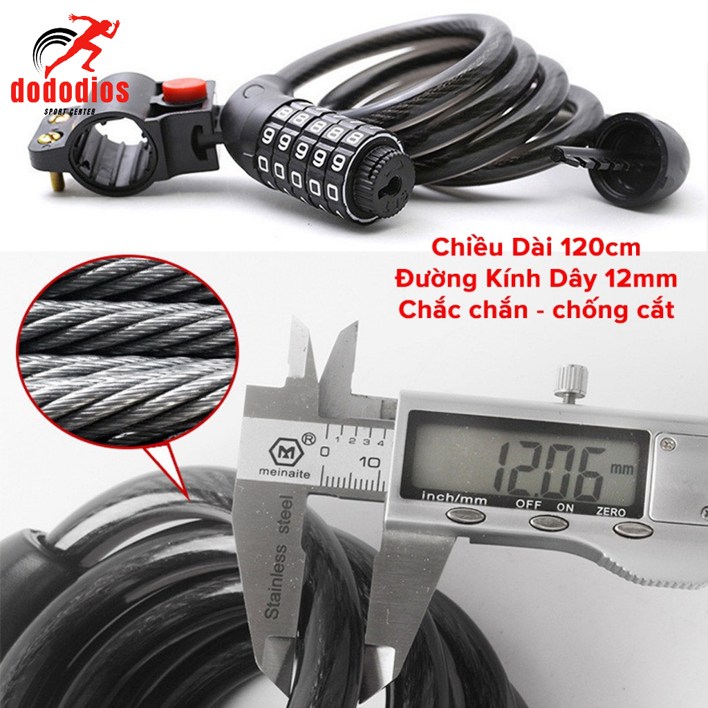✨Khóa xe đạp dây lõi thép 5 số dài 120cm – Chọn Màu – Bộ Khóa Xe Máy Thông Minh Chống Trộm Cao Cấp Chính Hãng dododios