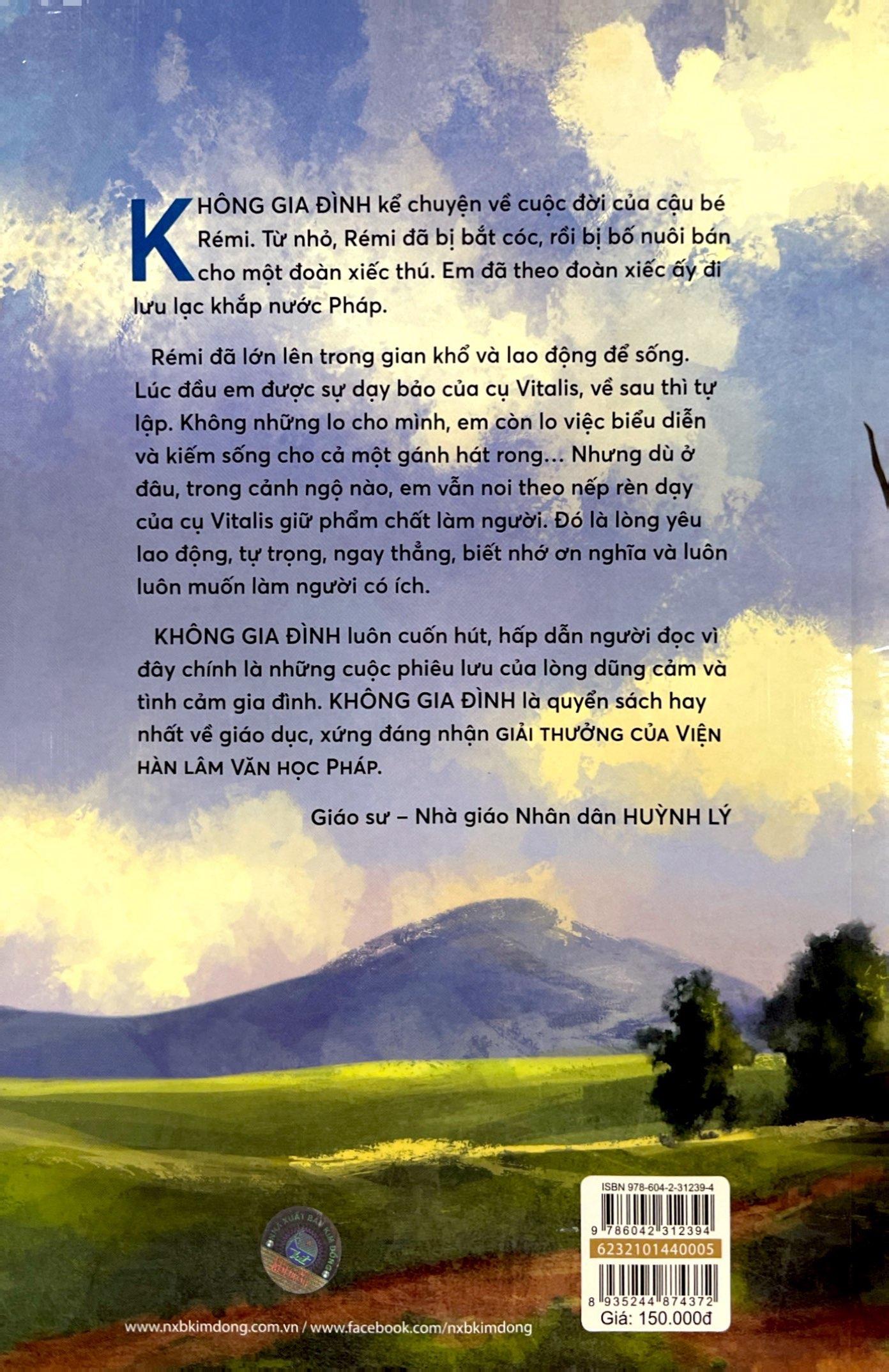 KHÔNG GIA ĐÌNH luôn cuốn hút, hấp dẫn người đọc vì đây chính là những cuộc phiêu lưu của lòng dũng cảm và tình cảm gia đình. KHÔNG GIA ĐÌNH là quyển sách hay nhất về giáo dục, xứng đáng nhận giải thưởng của Viện hàn lâm Văn học Pháp.” Giáo sư – Nhà giáo Nhân dân HUỲNH LÝ