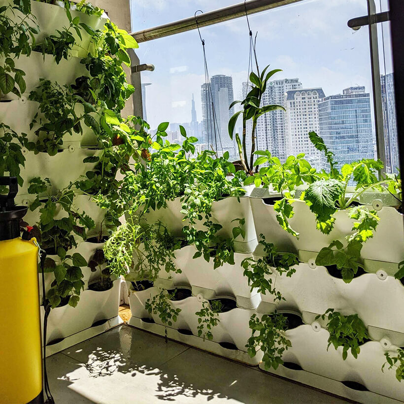 TỰ TRỒNG RAU BAN CÔNG DẠNG ĐỨNG CÓ TƯỚI NHỎ GIỌT BÁN TỪ ĐỘNG VERTICAL (1M2 gồm 8 Module x 2 Tray nước) XẾP NGANG PHÙ HỢP BAN CÔNG NGANG