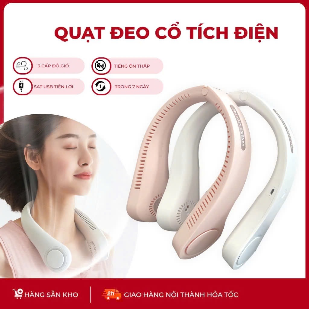 Quạt Đeo Cổ Mini Không Cánh - Tích Điện, Thời Trang, Dáng Thể Thao Siêu Phẩm Mùa Hè