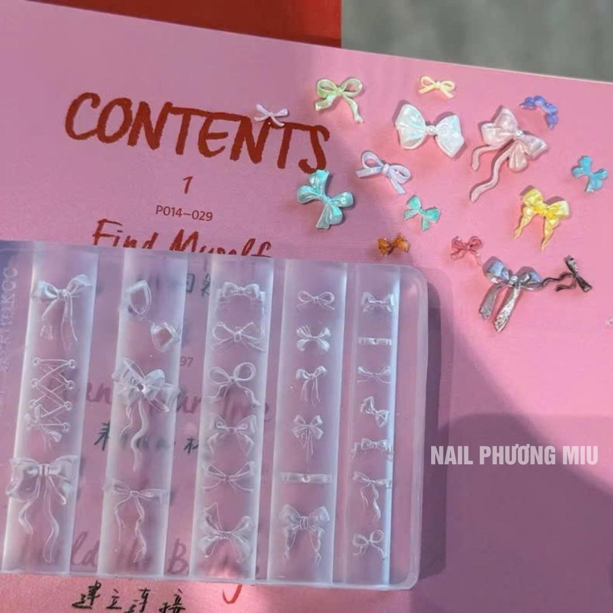 ✨Khuôn in 3D Silicon Tạo Hình Nơ Nút Dài Ngắn 25 Mẫu To Nhỏ Làm Nail Phong Cách Tiểu Thư Điệu Đà Đáng Yêu Trang Trí Móng Nghệ Thuật