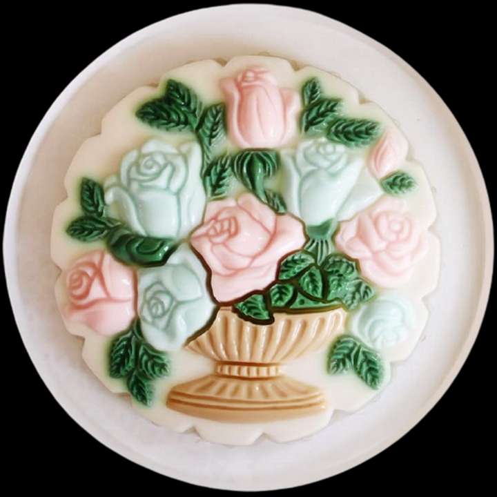Khuôn rau câu sinh nhật, cưới hỏi hình tròn bình hoa hồng – Mã số 1037
