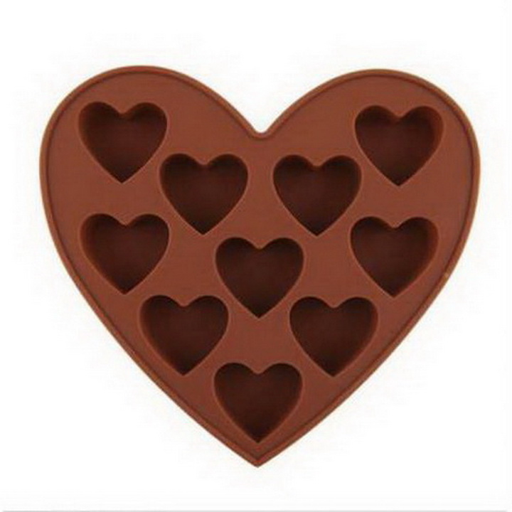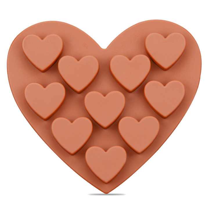 Khuôn silicon làm bánh, rau câu, socola 10 trái tim – Mã số 1083