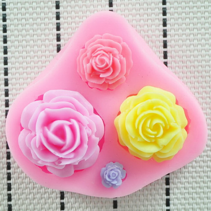 Khuôn silicon làm bánh, rau câu, socola 4 hoa hồng – Mã số 1045