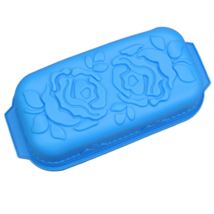 Khuôn silicon làm đế bánh, rau câu, bánh mì hình chữ nhật hoa hồng đôi kèm lá - Loại 29 cm - Mã số 1109
