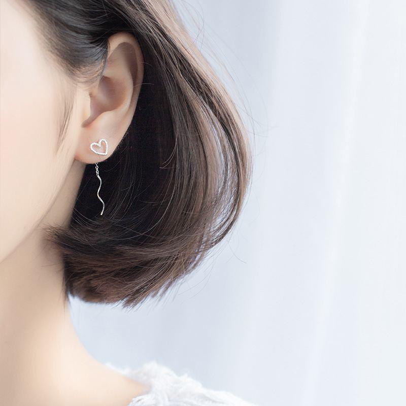 Khuyên tai bạc tim thả xích đơn giản. Đôi khuyên mang phong cách Hàn Quốc thời trang, nữ tính nhưng thực sự là mẫu dành cho những cô nàng trendy.