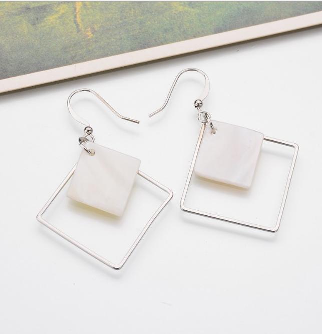 ✨Khuyên tai hình vuông BT113 cá tính (Vân ngọc mầu ngẫu nhiên)