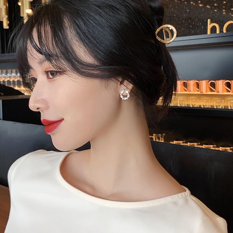 ✨Khuyên tai họa tiết hình nơ đính đá nhân tạo FUHA, bông tai thời trang dành cho phái nữ