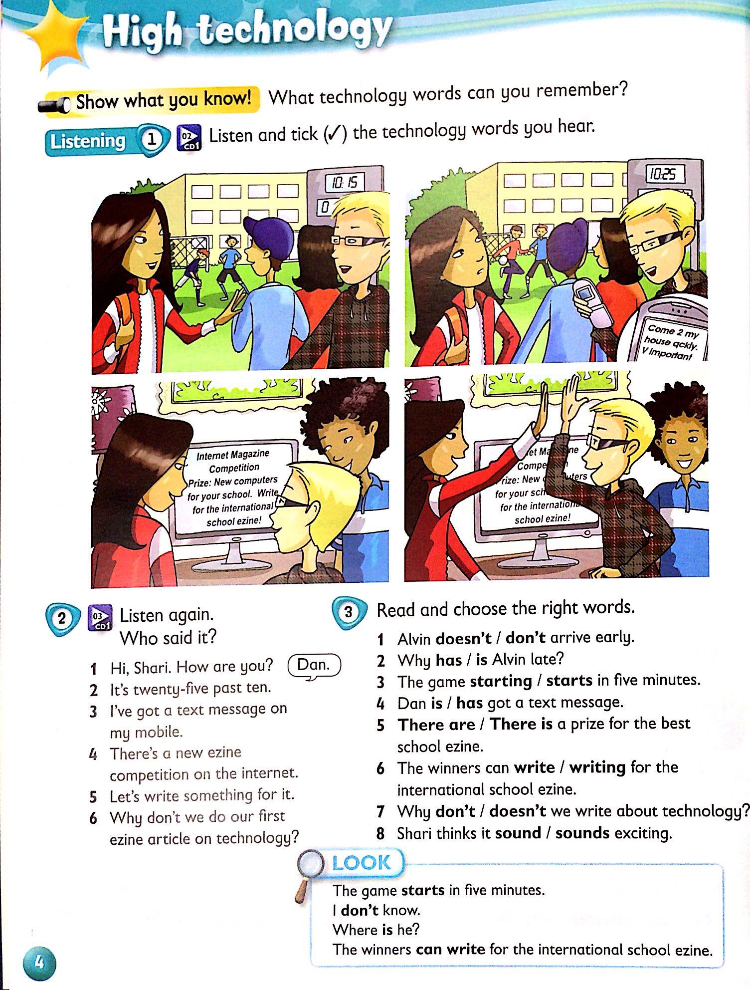 Kid's Box Starter - Unit 1 - Hello - 1 - Listen and point. With comic dialogue box.