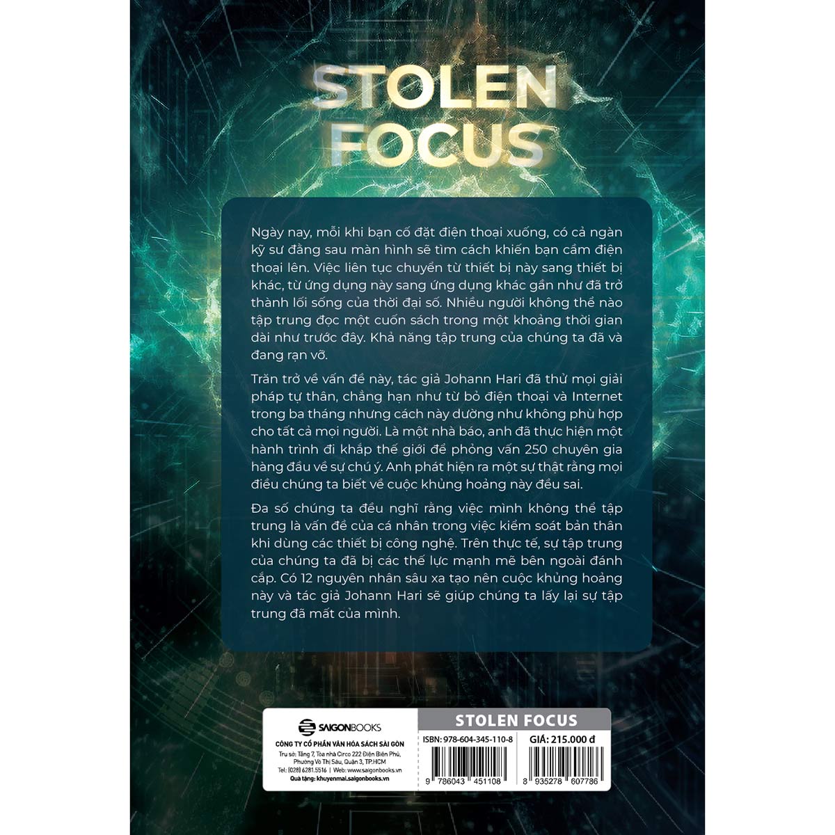 Xuyên suốt cuốn sách Stolen Focus: Why You Can’t Pay Attention - and How to Think Deeply Again này, bạn sẽ học cách thực hiện giảm thiểu những vấn đề về khả năng tập trung, tác giả đã gom góp hơn 250 công trình nghiên cứu khoa học về sự tập trung khi viết ra quyển sách này.