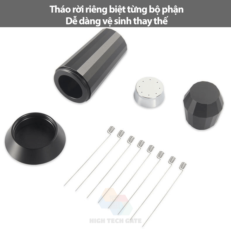 Thiết kế có thể tháo rời toàn bộ các bộ phận riêng biệt. Vệ sinh Kim đánh tơi bột cà phê WDT dễ dàng mà đơn giản.