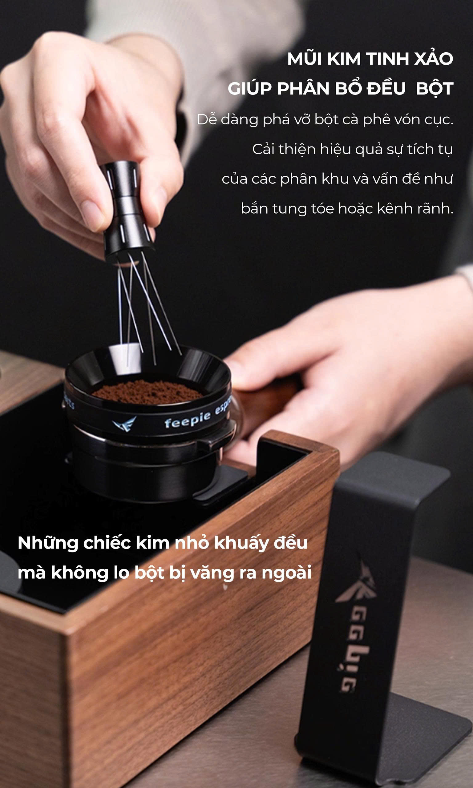 FEEPIE KIM XOAY TÁN ĐỀU BỘT THOR – PHÂN BỐ HOÀN HẢO, CHIẾT XUẤT CHUẨN BARISTA! Bạn gặp tình trạng bột cà phê bị vón cục, kênh rãnh khi pha espresso? Bạn muốn phân bố