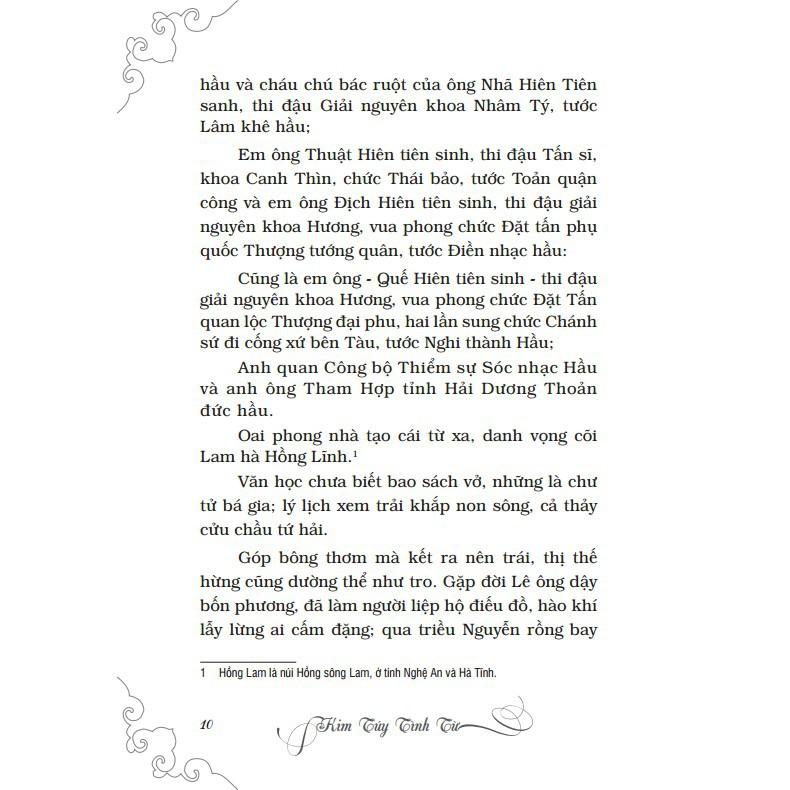 Mua tại TiktokCuốn "Kim Túy tình từ" này được ông Huỳnh Thúc Mậu dịch lại từ bản chính gốc " Kim Túy tình từ" (bản cũ do cháu dòng họ Nguyễn Du là Nguyễn Mai hiệu Long Khê hữu tuyết cất giữ, có chú dẫn điển tích rõ ràng).