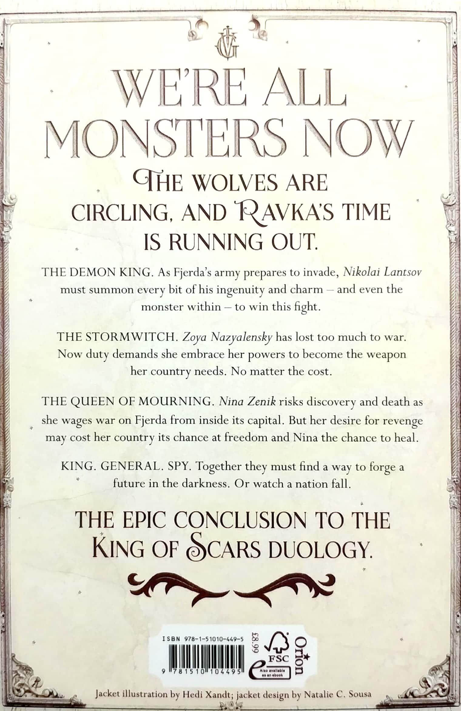 The Demon King. As Fjerda's massive army prepares to invade, Nikolai Lantsov will summon every bit of his ingenuity and charm - and even the monster within - to win this fight. But a dark threat looms that cannot be defeated by a young king's gift for the impossible.