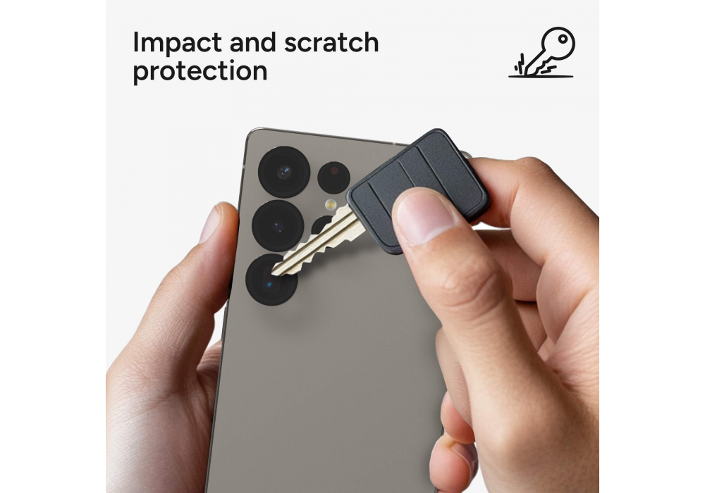 Bộ bảo vệ ống kính riêng biệt bền bỉ giúp bảo vệ camera Galaxy S25 Ultra của bạn khỏi mọi vết nứt và trầy xước Thiết kế Viền cong nhô cao và mỏng chỉ 1,5mm