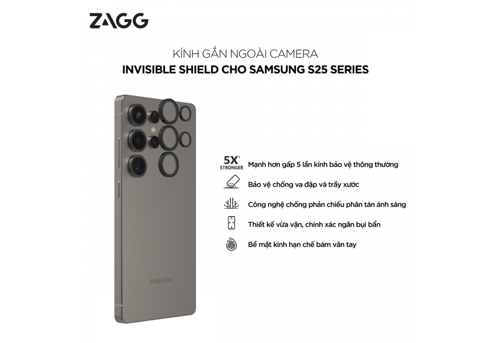 Thuộc thương hiệu kính dán cao cấp đến từ Mỹ Mạnh hơn 5 lần: Kính gắn ngoài Camera InvisibleShield mạnh hơn 5 lần so với lớp bảo vệ màn hình bằng kính thông thường. *