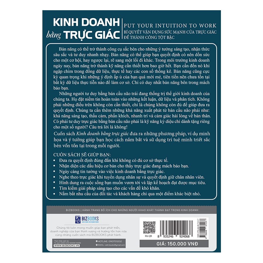 Vậy, trực giác là vũ khí bí mật mà mỗi người đang tiềm ẩn. Khám phá đúng được bản chất của nó thì bạn sẽ dễ dàng có được sự thành công. “Kinh doanh bằng trực giác” là cuốn sách vô cùng thú vị mà bạn không nên bỏ qua. Nó sẽ giúp bạn khám phá được bản năng để có thể trở thành công cụ sắc bén cho những ý tưởng sáng tạo, nhận thức sâu sắc và tư duy nhanh nhạy. Đồng thời lý giải 1 cách dễ hiểu về tại sao cần đến trực giác, và trực giác giúp bạn thành công như thế nào, phương thức đạt được trực giác và vận dụng nó hợp lý và hiệu quả.