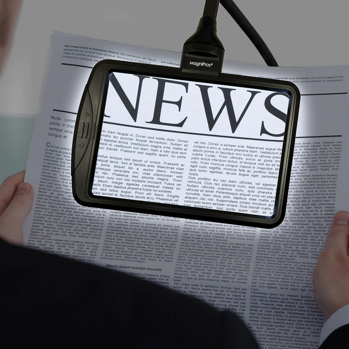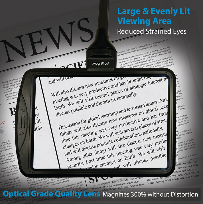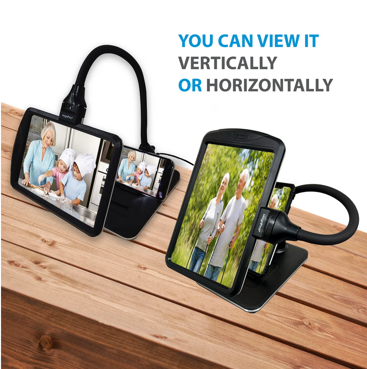 Khu vực xem cực lớn và trong trẻo: Thấu kính phóng đại Acrylic cao cấp bao phủ khu vực xem rộng mà không cần phải liên tục chỉnh tay, thấu kính (khu vực xem) có kích thước 4,75"x 7"/ 12.06 x 17.78 cm và phóng đại tới 400% mà không bị biến dạng.