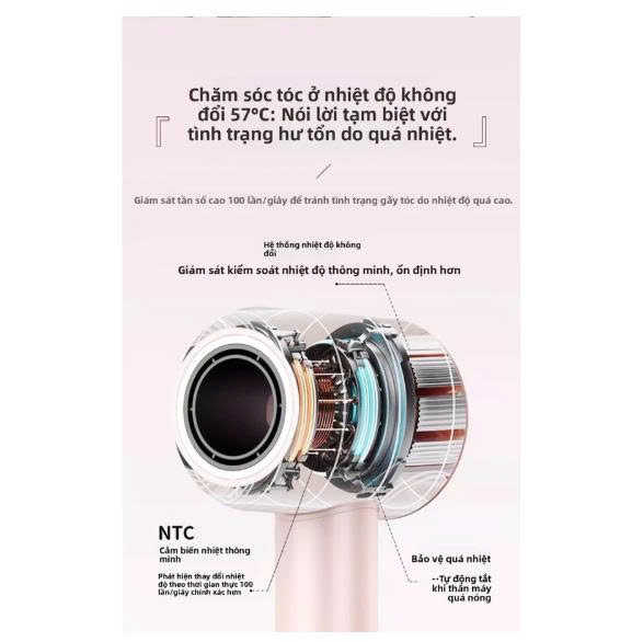 Công nghệ sấy không lá hiện đại – tạo luồng gió mạnh mẽ, giúp tóc khô nhanh gấp 2 lần mà không làm khô xơ hay gãy rụng.