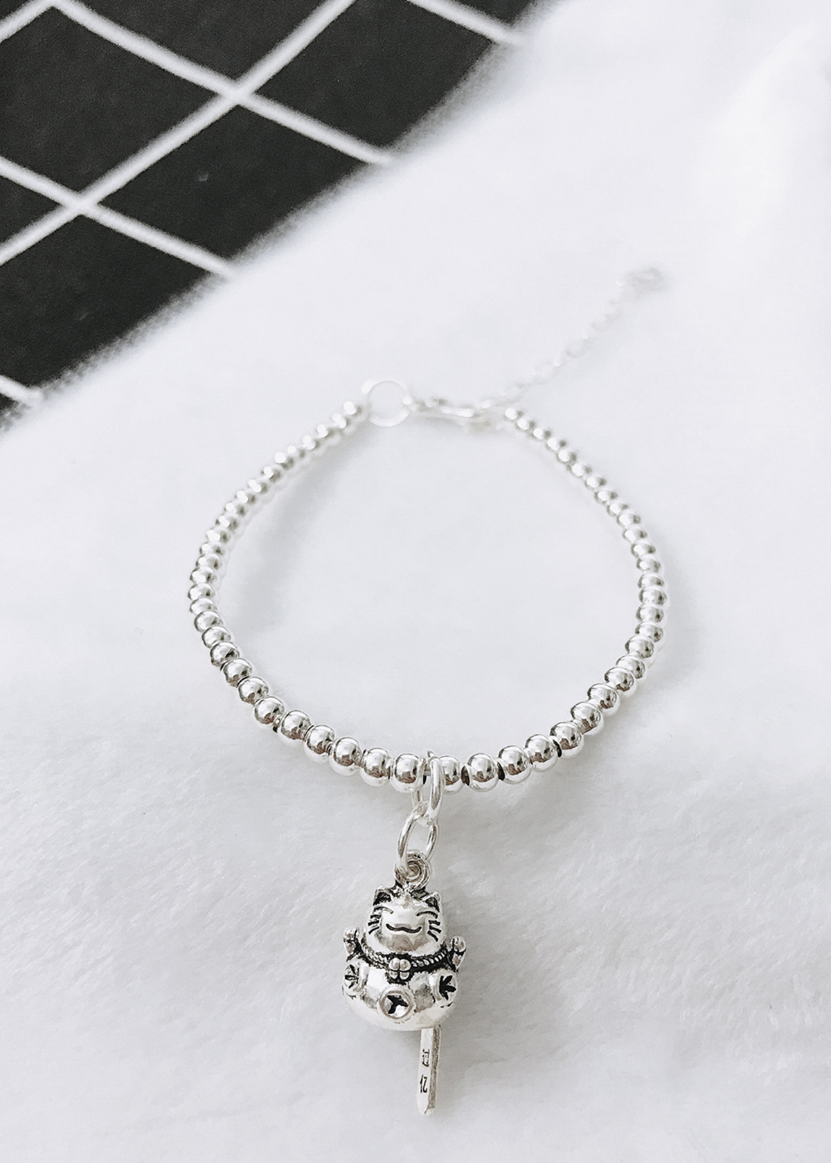 ✨Lắc bi bạc 3mm mèo may mắn - Ngọc Quý Gemstones