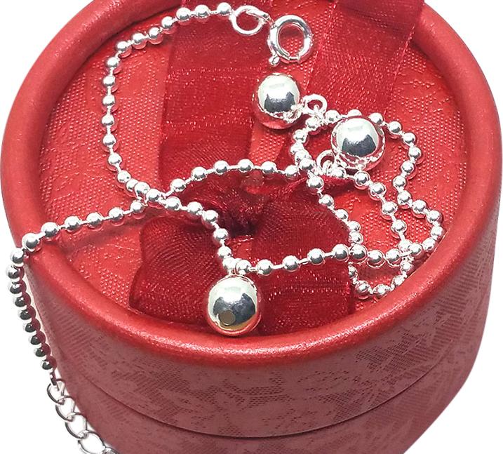 Lắc Chân Nữ Bạc 925 Dây Mì Mix Bi Tròn Bạc Hiểu Minh LC239