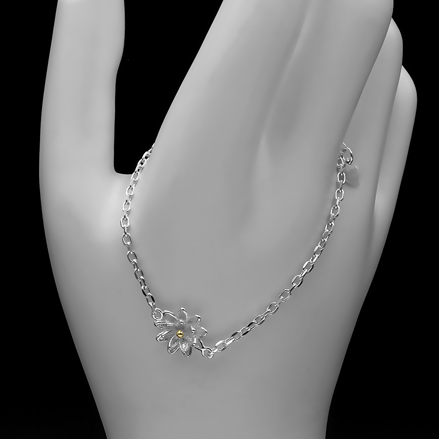 Là con gái, hẳn bạn luôn bị cuốn hút trước những bộ cánh thời trang và những đôi giày sành điệu. Tuy nhiên để làm hoàn hảo hình ảnh của mình trong mắt người đối diện, các bạn cần thêm những món phụ kiện bé bé xinh xinh để điểm tô cho vẻ ngoài thêm ấn tượng. Và hôm nay, S sẽ mang đến các bạn cơ hội sở hữu chiếc lắc tay rất dễ thương, được làm bằng bạc ta. Sản phẩm thích hợp với những bạn gái có phong cách dịu dàng, nữ tính.