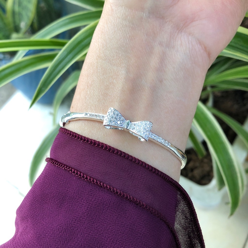 ✨Lắc Tay Nữ Bạc Ta Nơ Xinh Đính Đá CZ Cao Cấp Bạc Hiểu Minh LTU535