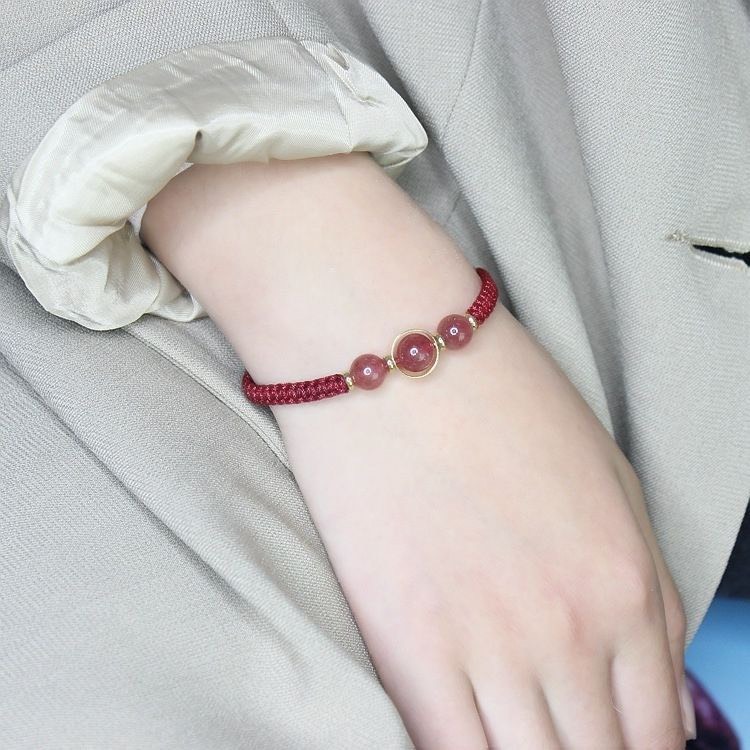 - Chất liệu : dây chỉ đỏ , hạt đá thach anh dâu Tây .