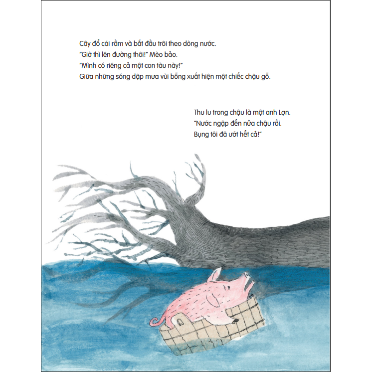 "“Lại đây nào!” Mèo bảo. Và thế là Mèo mời từng con vật cùng lên thân cây lánh nạn." Câu nói đơn giản này đã thể hiện rõ tấm lòng nhân hậu và sự dũng cảm của Mèo Bảo, trở thành thông điệp chính của câu chuyện.