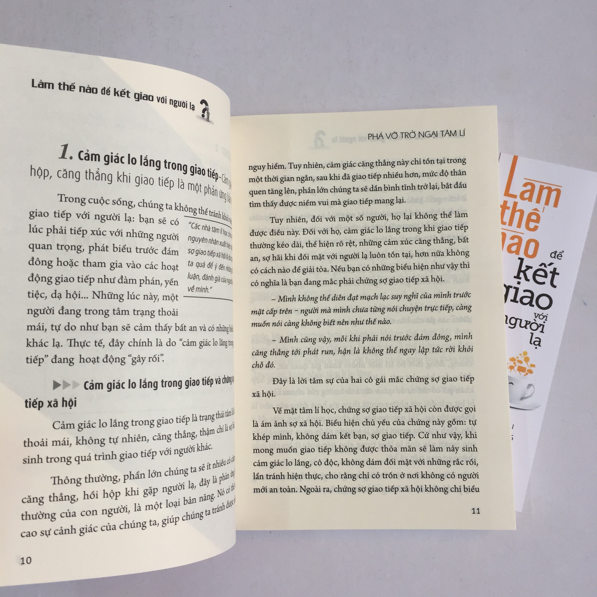 Đôi khi thứ cản trở bạn giao tiếp với người khác không phải là ngoại hình hay cách ăn mặc không phù hợp của bạn, mà chính là trờ ngại xuất phát từ nội tâm. Chỉ cần phá vỡ trở ngại này, tất cả mọi vấn đề khó khăn trong giao tiếp đều được hóa giải. Làm thế nào để phá vỡ được trở ngại đó Vì vậy, bước đầu tiên khi kết giao với người lạ chính là phải hiểu được những trở ngại tâm lí của bản thân và biết cách vượt qua nó. Cuốn sách này sẽ giúp bạn cải thiện trạng thái tâm lí của bản thân, đồng thời trau dồi thêm những kĩ năng giao tiếp, giúp bạn thoải mái trò chuyện và tạo dựng mối quan hệ tốt đẹp với người lạ. Cảm ơn bạn đã tham khảo cuốn sách này. Chúc một ngày tốt lành!