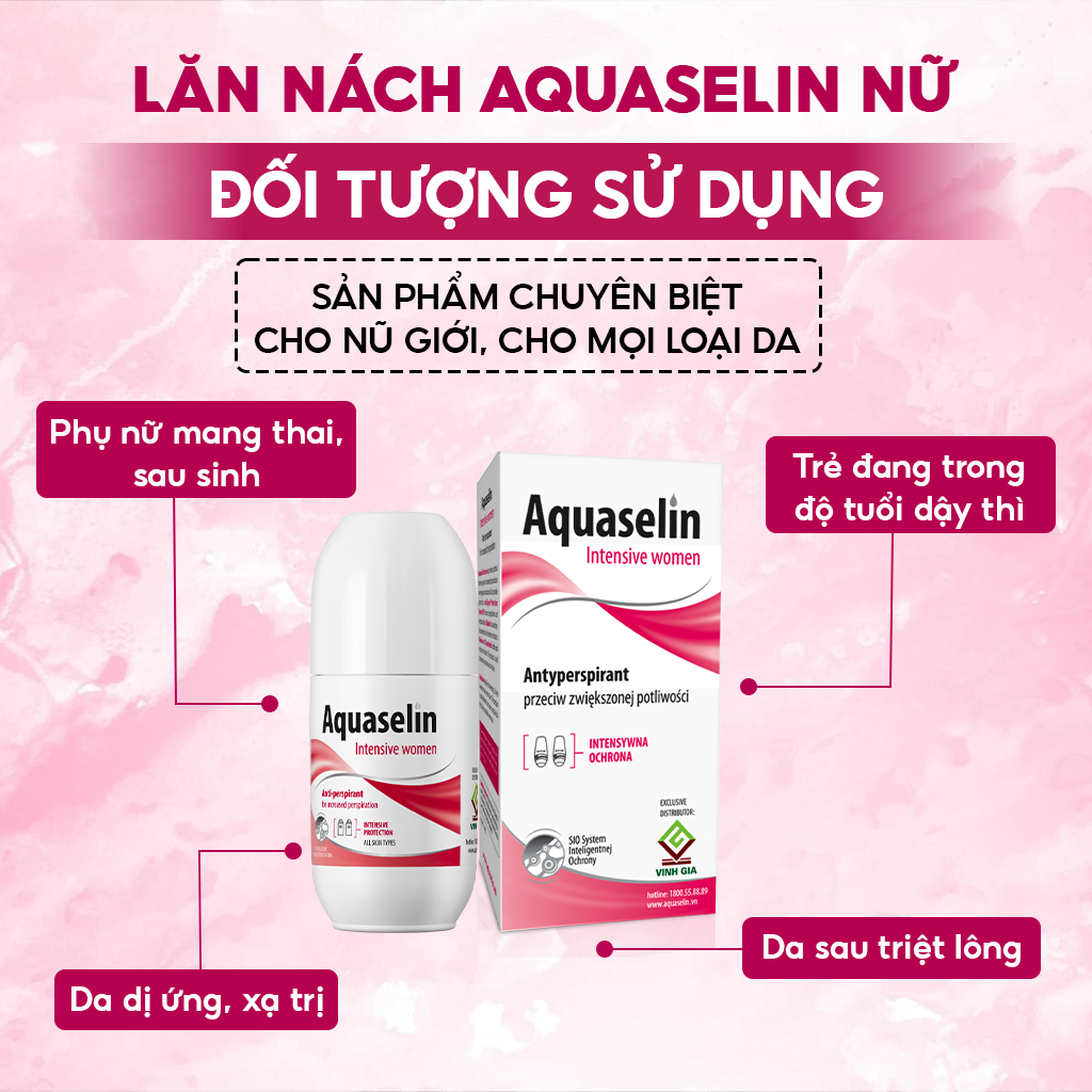 Mua tại TiktokLăn Khử Mùi Dành Cho Nữ AQUASELIN Intensive Women Mờ Thâm, Không Mùi, Ngăn Ố Vàng Áo Dùng Được Cho Mẹ Bầu 50ml