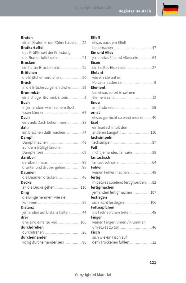 Diese 250 thematisch sortierten Redewendungen helfen Ihnen, bildhafte Alltagssprache zu verstehen. Beispielsätze veranschaulichen die richtige Verwendung, Quizfragen & Fettnäpfchen garantieren Spaß beim Lernen. So haben Sie bei Ihrem Gegenüber sicher bald "einen Stein im Brett".