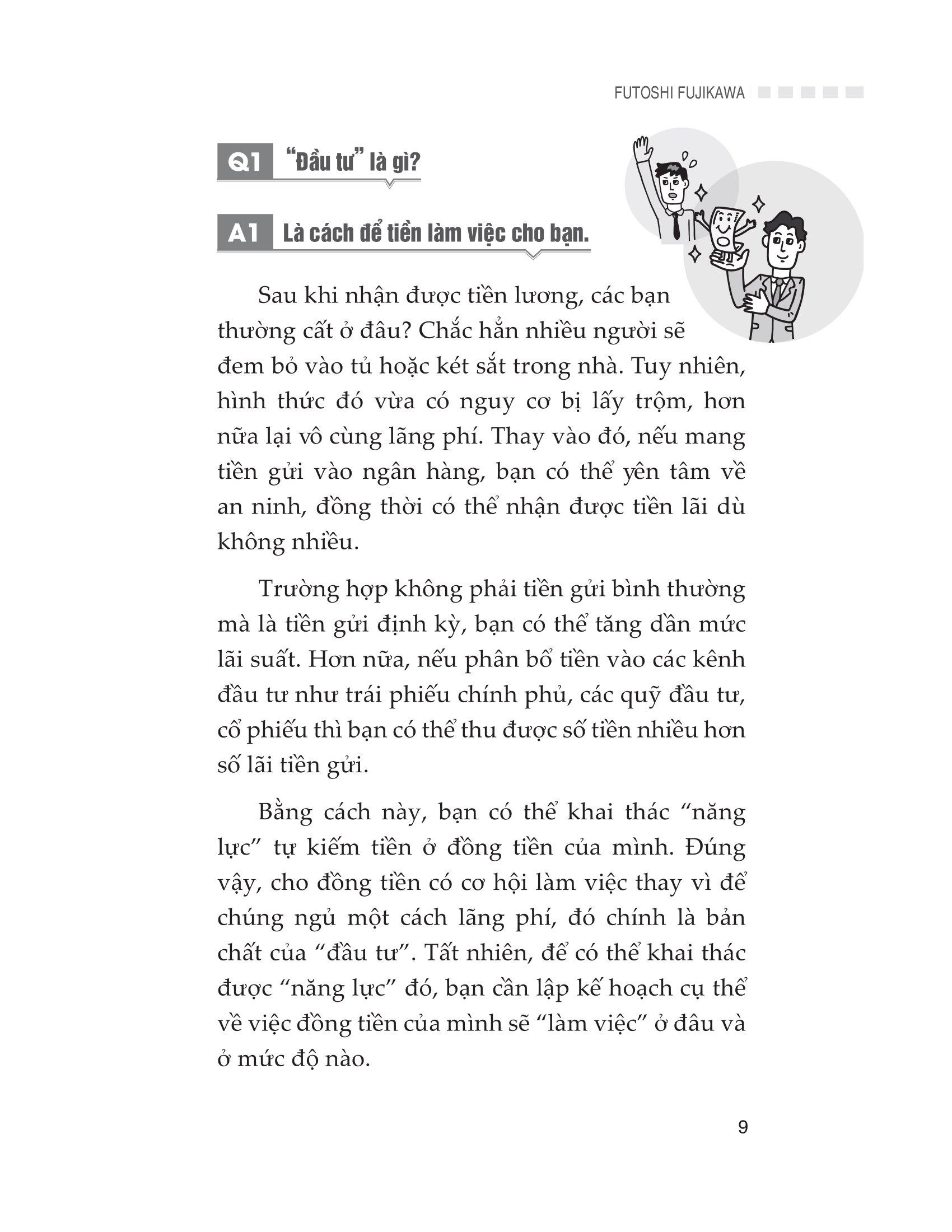 Tác giả Futoshi Fujikawa cũng sẽ giới thiệu một loạt các phương thức hoạt động từ kiến thức cơ bản về tiền tệ đến đầu tư trái phiếu, ủy thác đầu tư, cổ phiếu và ngoại tệ.