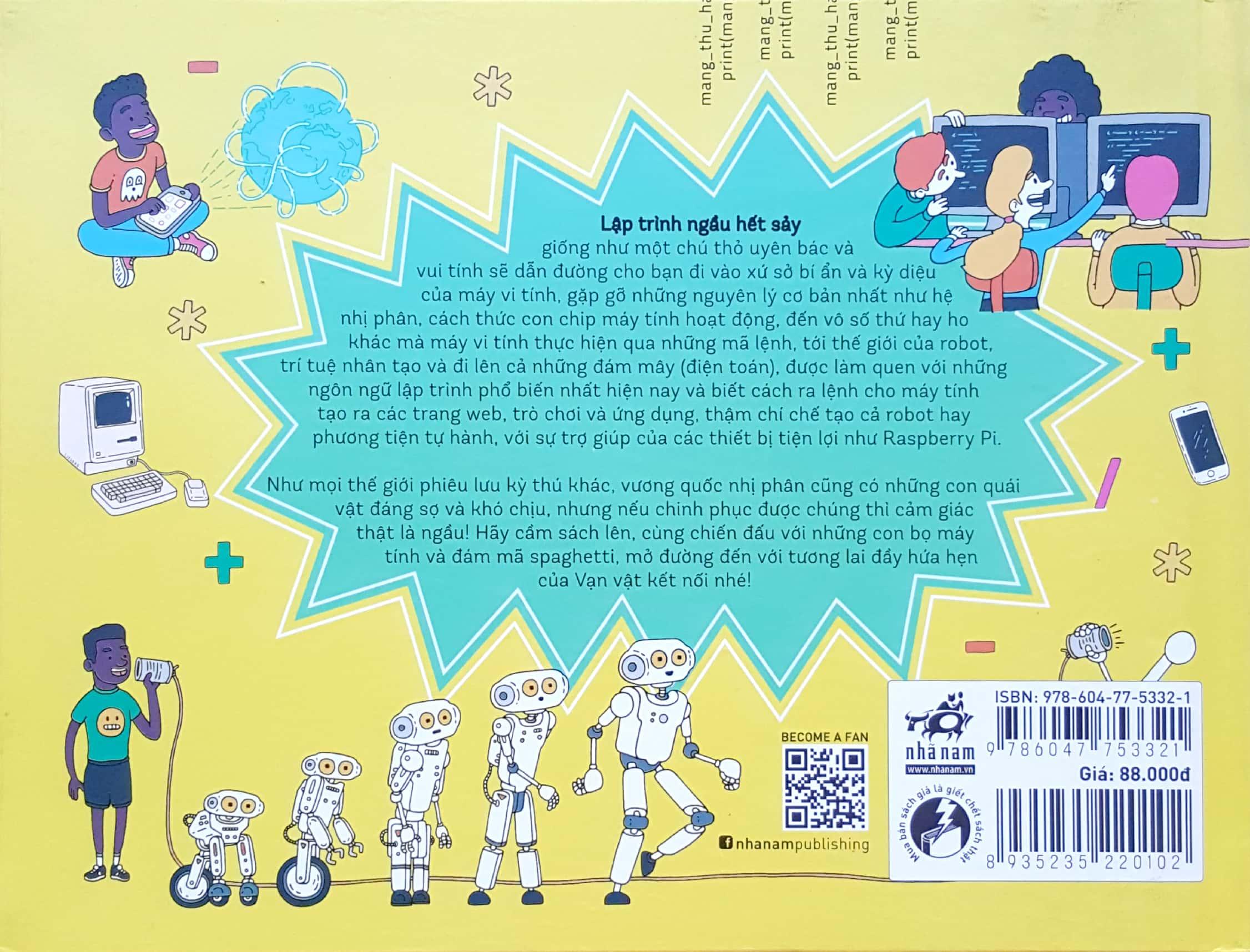 Giống như mọi thế giới phiêu lưu kỳ thú khác, vương quốc nhị phân cũng có những con quái vật đáng sợ và khó chịu, nhưng nếu chinh phục được chúng thì cảm giác thật là ngầu! Hãy cầm sách lên, cùng chiến đấu với những con bọ máy tính và đám mã spaghetti, mở đường đến với tương lai đầy hứa hẹn của Vạn vật kết nối nhé!