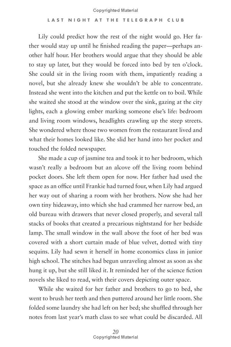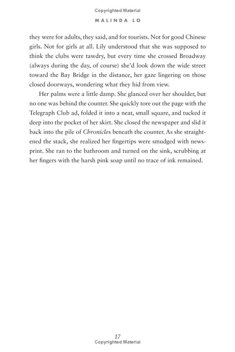 Seventeen-year-old Lily Hu can't remember exactly when the feeling took root—that desire to look, to move closer, to touch. Whenever it started growing, it definitely bloomed the moment she and Kathleen Miller walked under the flashing neon sign of a lesbian bar called the Telegraph Club. Suddenly everything seemed possible.