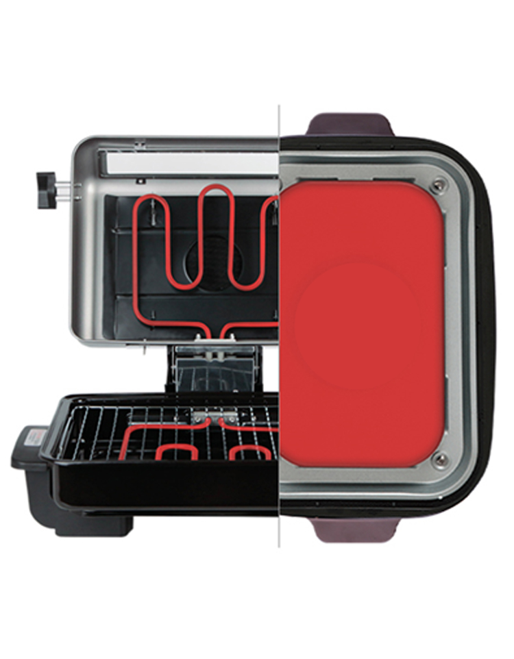• Với thiết kế rãnh thoát dầu trên bề mặt lồng nướng cho lượng dầu mỡ dư chảy xuống theo rãnh trong khi nướng giúp thức ăn không chứa nhiều dầu mỡ.