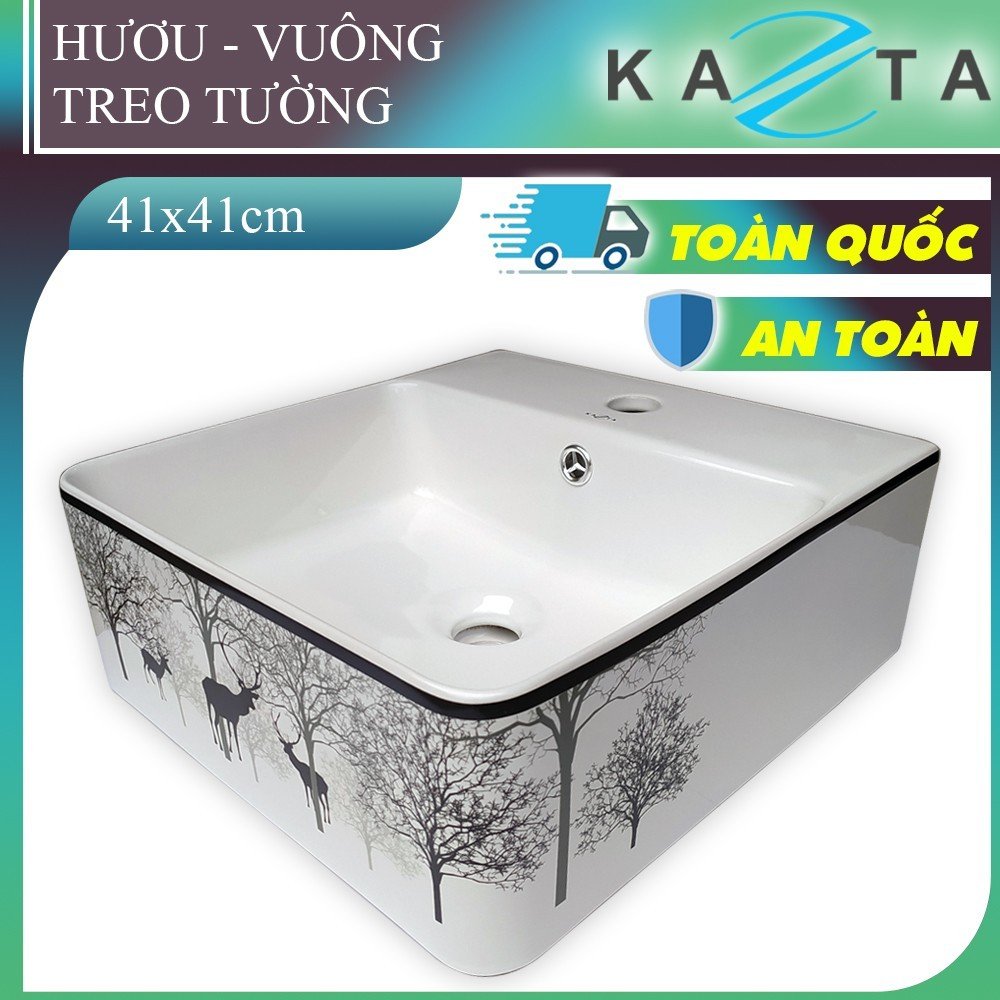 ✨Lavabo Vừa Treo Tường Vừa Đặt Bàn Vuông Hươu Đen KAZTA KZ-CL2662
