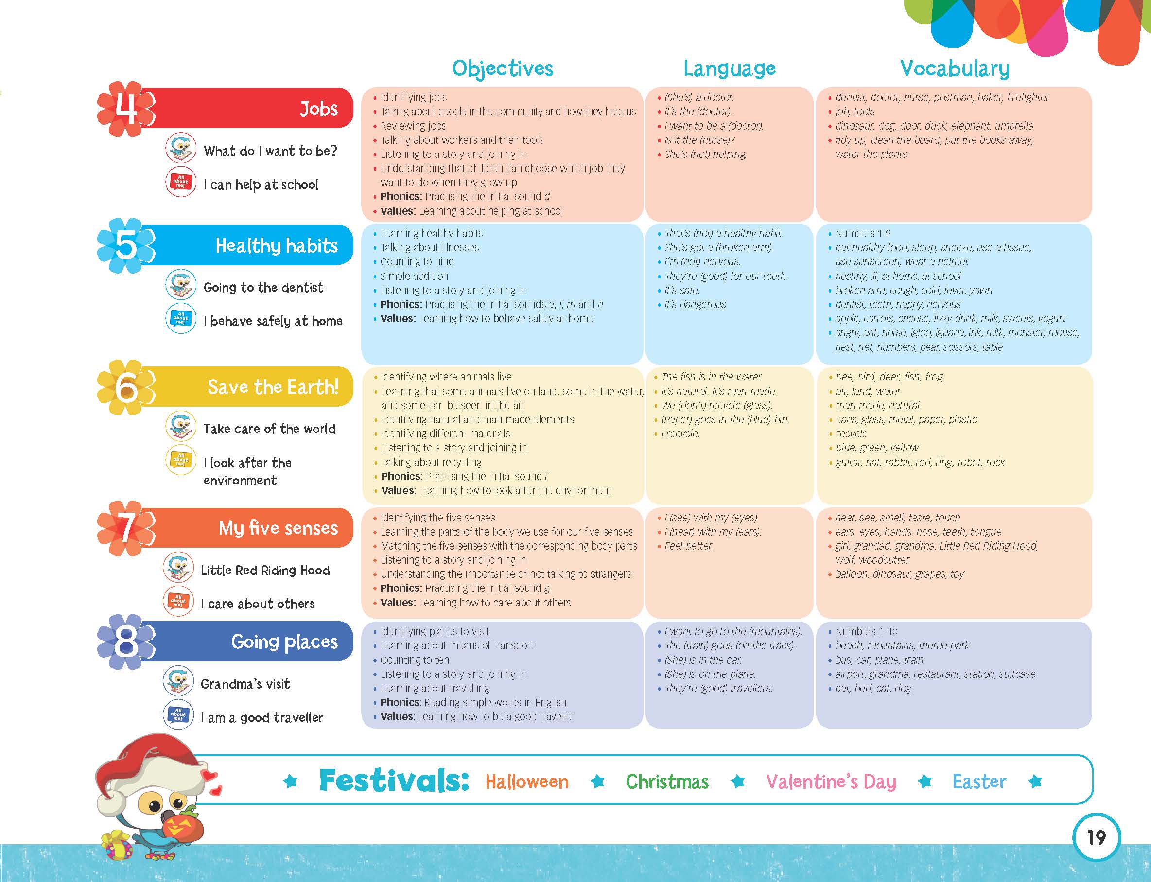 Với nội dung được sắp xếp và cấu trúc chặt chẽ, bộ sách chắc chắn sẽ thúc đẩy sự phát triển các kỹ năng cần thiết cho trẻ một cách vui vẻ và hào hứng qua các bài giảng và tài tập khuyến khích các bé từ hiểu sang sử dụng thực hành.