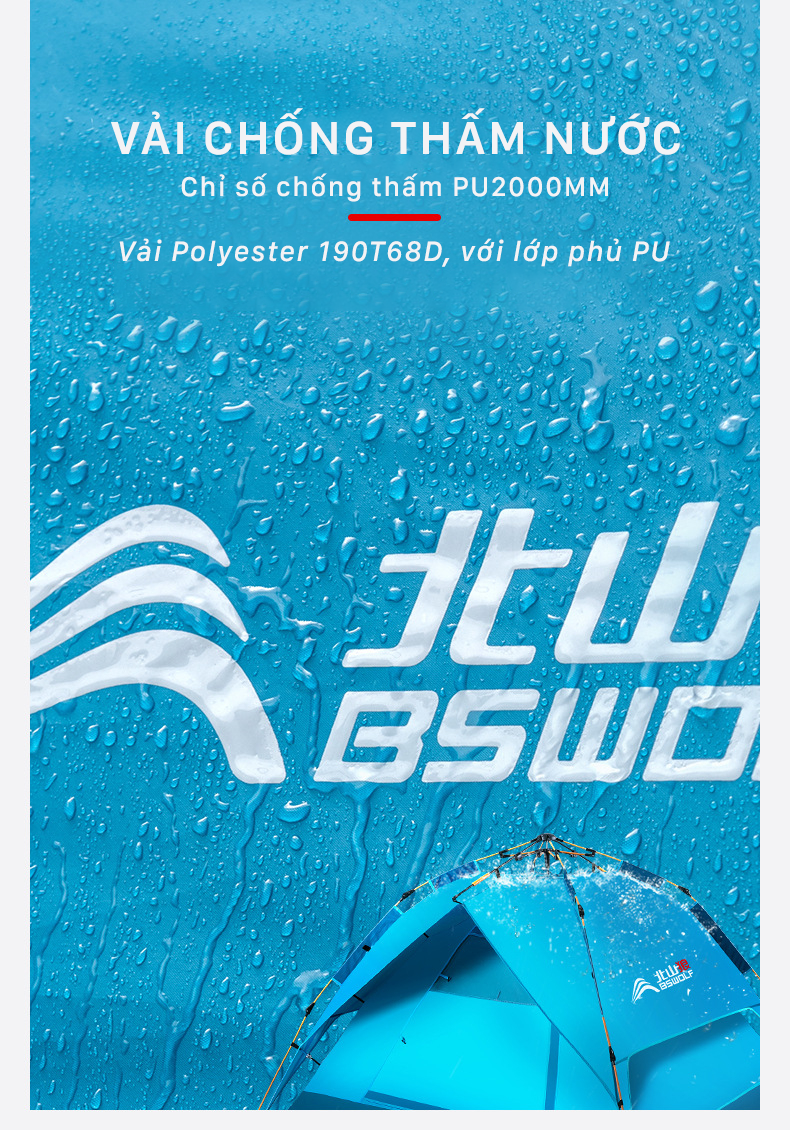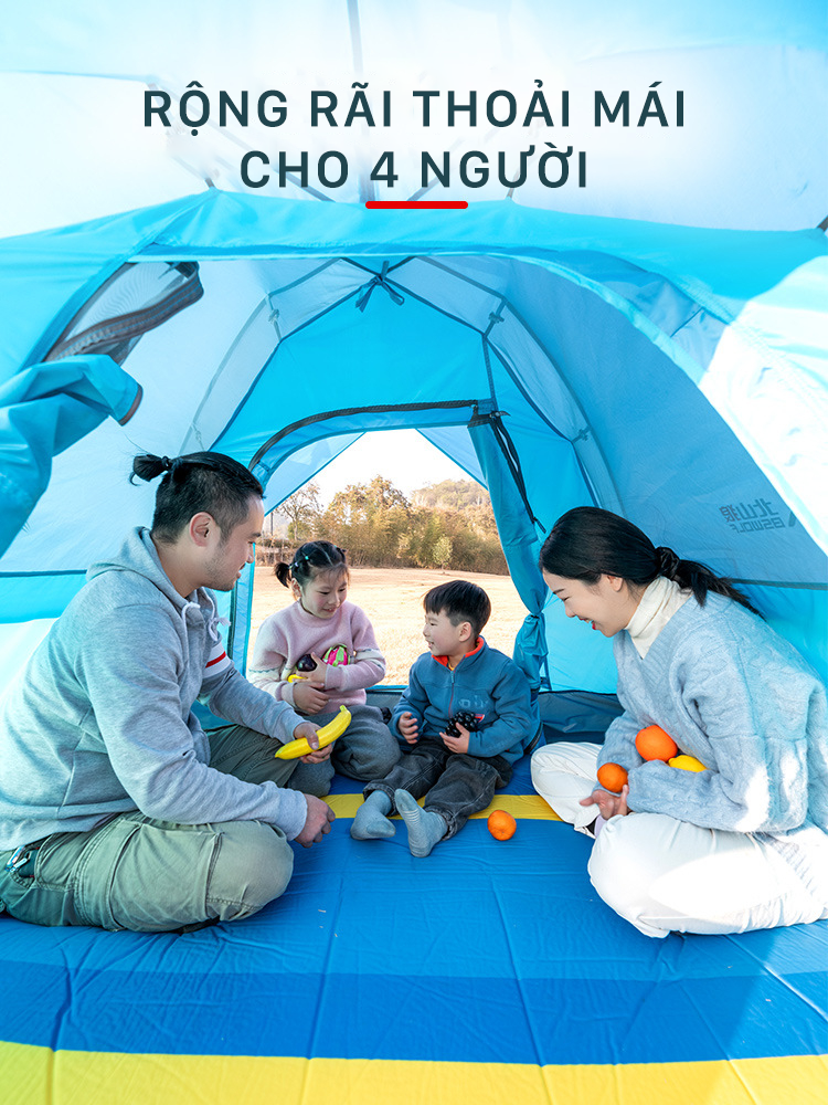 – Kích thước lều lớn, không gian rộng rãi thoải mái cho 3-4 người sử dụng.