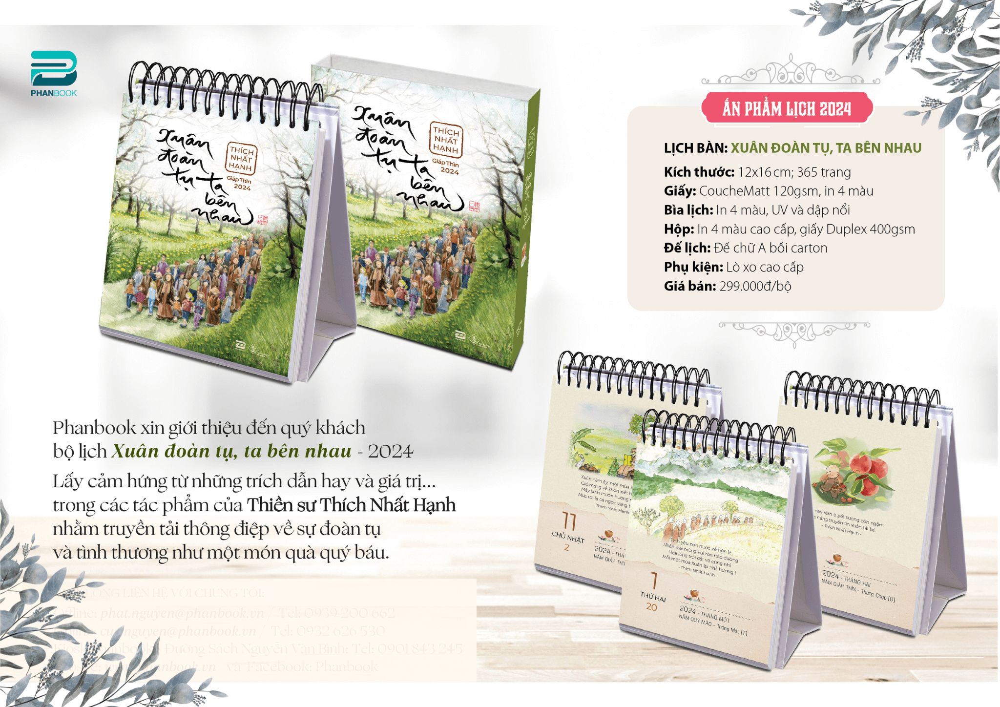 LỊCH BÀN 2024 XUÂN ĐOÀN TỤ, TA BÊN NHAU - THÍCH NHẤT HẠNH Xuân đoàn tụ, ta bên nhau lấy cảm hứng từ những trích dẫn giá trị trong các tác phẩm của Thiền sư