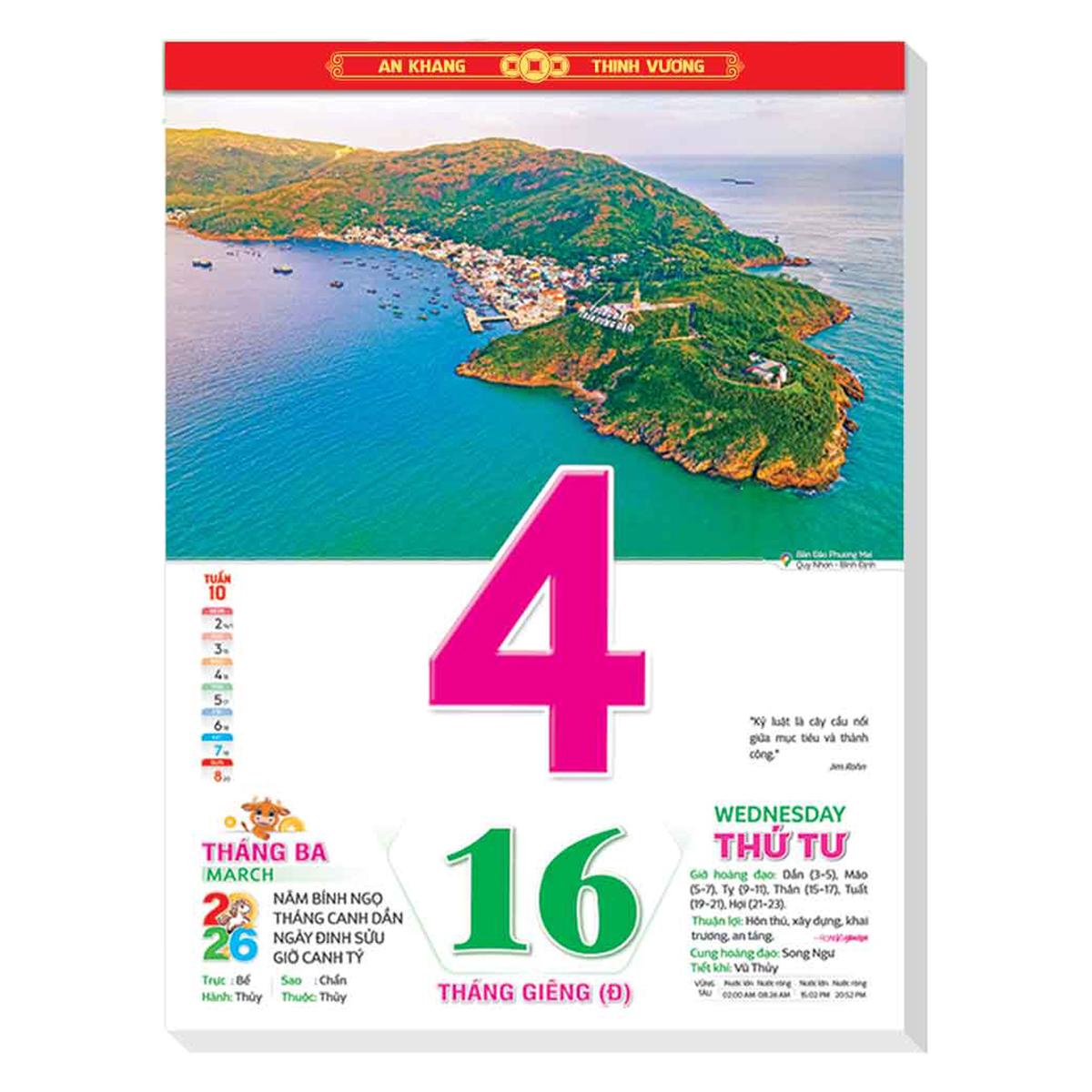- Quyển Bloc lịch 2026 dùng gắn vào các loại bìa lịch treo tường, thay thế Bloc năm cũ. * QUY CÁCH BLOC LỊCH: - Chất lượng in công nghệ hiện đại, sắc nét, in
