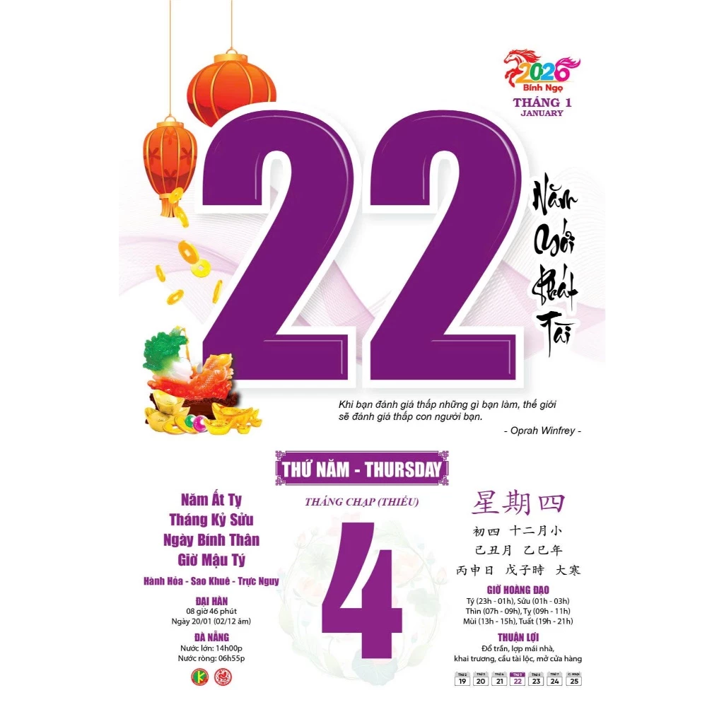 Lịch Bloc Siêu Cực Đại Đặc Biệt 2026 - Non Nước Việt Nam - An Lành Hạnh Phúc - Đại Việt Á DVA02 - Chữ Lộc - Lịch bloc giúp bạn nắm rõ ngày dương,